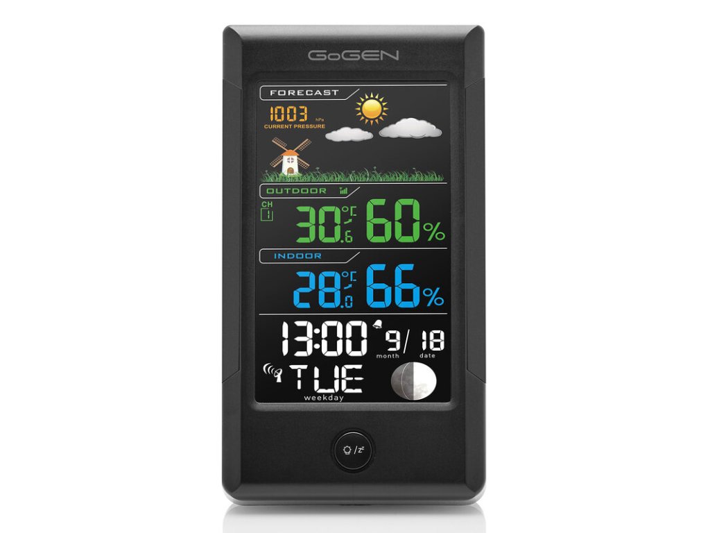 Na farebnom LCD displeji ľahko zistíte, aká je aktuálna vnútorná teplota a vlhkosť. Zároveň ale budete informovaní o vonkajšej teplote a vlhkosti. A to vďaka pribalenému teplotnému čidlu, s dosahom až 30 metrov (v závislosti od umiestnenia).